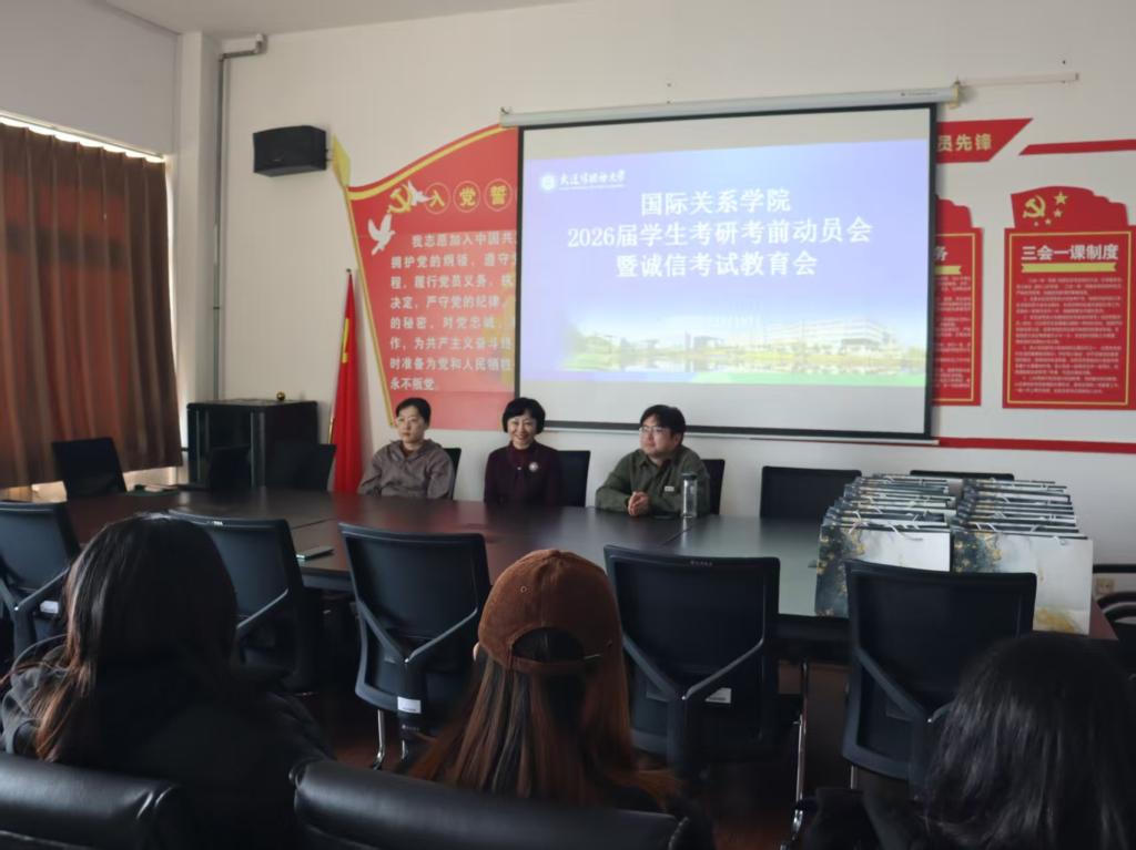 于励业楼537召开2026届考研考前动员会暨诚信考试教育会。党总支书记郝利群、副院长王琳、辅导员毕如一及2026届考研学生参加本次会议。本次会议由郝利群主持。