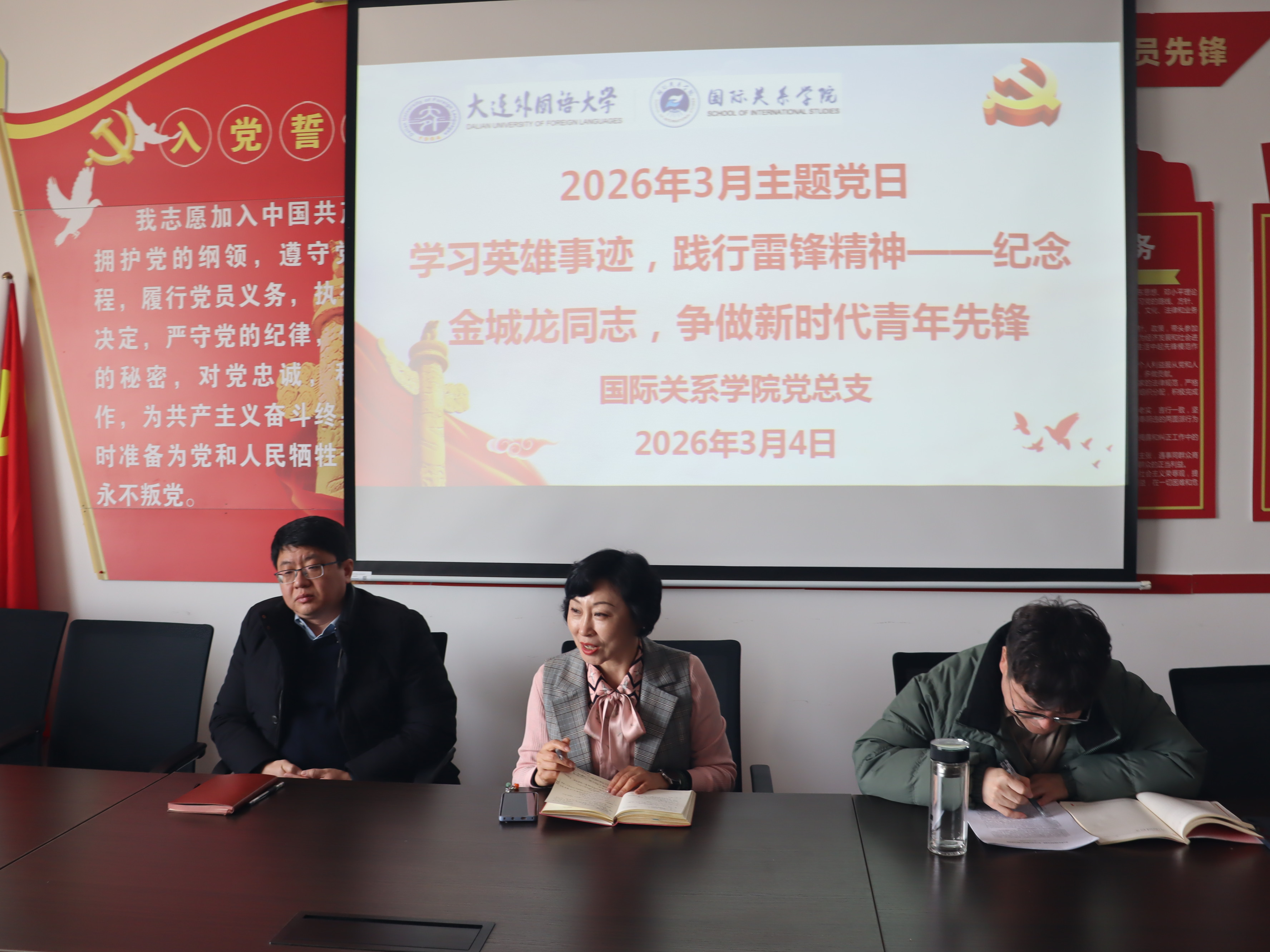 学生党支部书记侯培岩以“以英雄之名,赴时代之约”为题上专题党课、开学第一课。专题党课介绍了金城龙同志的先进事迹,引导青年党员学习他信仰如磐的政治品格、专业报国的价值追求与甘于奉献的崇高境界。专题党课上,党员代表交流感悟,激励全体党员立志在危急时刻冲锋在前,甘于奉献,在奉献中实现自我、成就大我,践行新时代的雷锋精神。