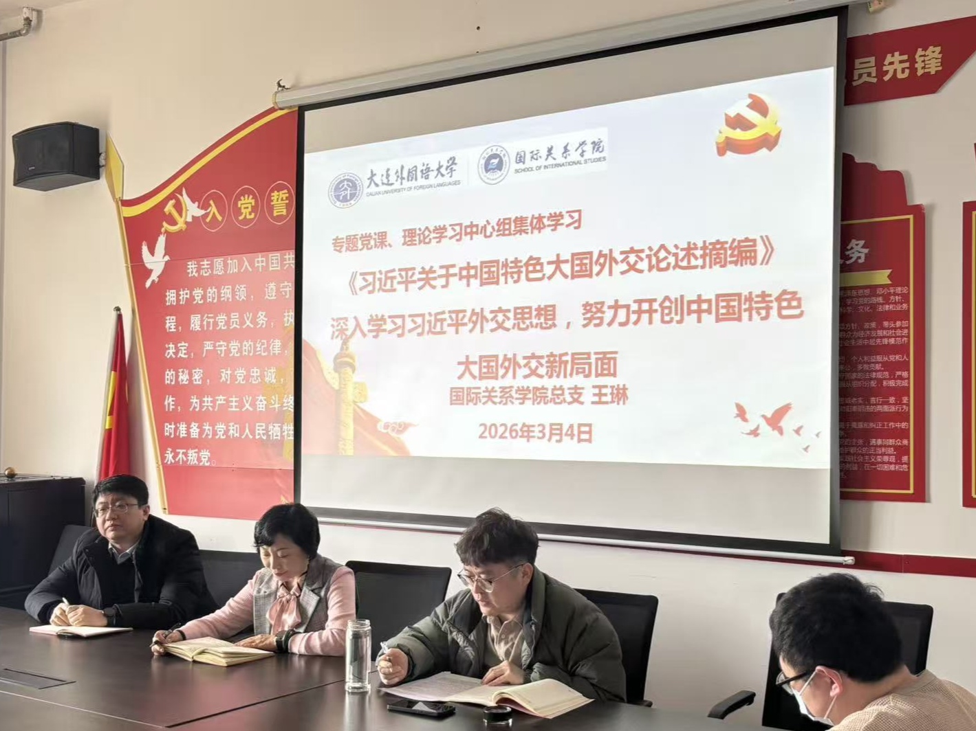 在集体学习中,全体党员学习了《习近平谈治国理政》第五卷、《习近平法治文选》等重要著作,跟进学习习近平总书记在中央政治局第二十三次集体学习、中央经济工作会议、中央政治局民主生活会上的重要讲话精神。重点学习“习近平论中国特色大国外交”。集体观看“十五五“时期经济社会发展的指导思想、重大原则和根本保证、“十五五“时期经济社会发展的重大战略任务两个专题党课。