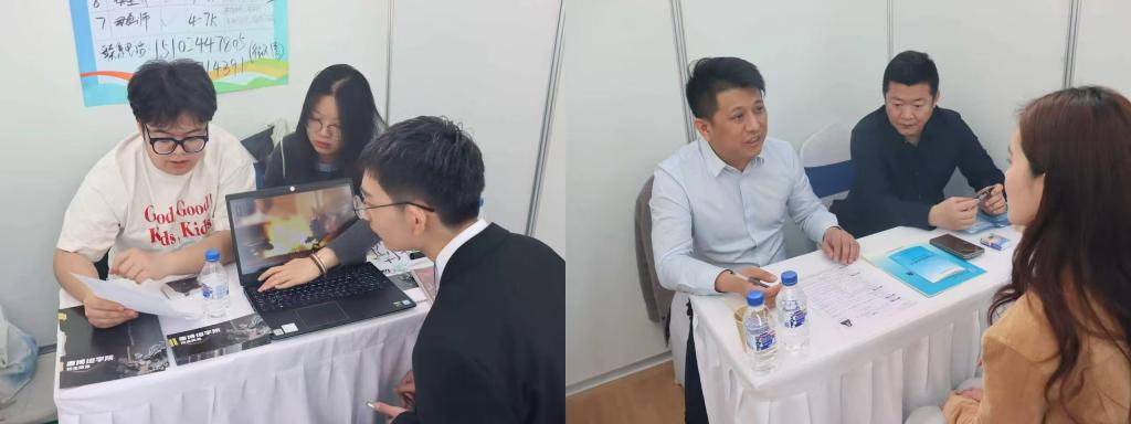 毕业生精神饱满,携带简历主动与企业经理沟通,展示专业优势,凭借扎实的专业知识和良好素养赢得用人单位认可。