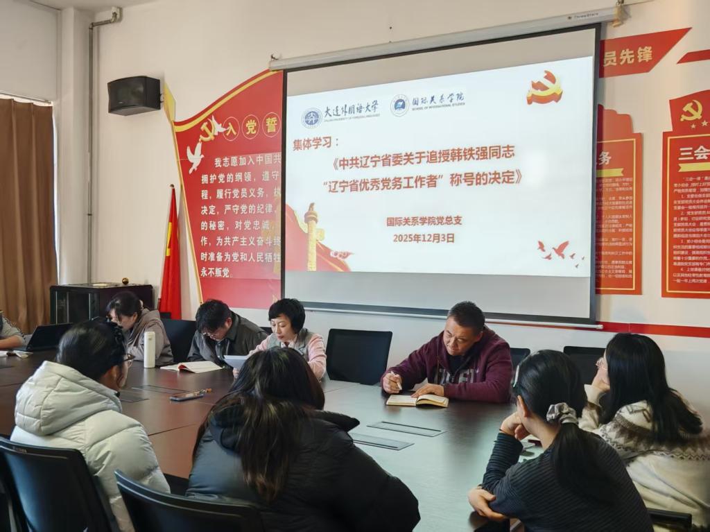 集体学习环节,郝利群带领党总支全体师生党员学习《中共辽宁省委关于追授韩铁强同志“辽宁省优秀党务工作者”称号的决定》,她强调通过韩铁强同志的事例,党员们更应坚定信念,坚持用习近平新时代中国特色社会主义思想武装头脑,一心为民、勤勉敬业、清正廉洁,永葆共产党人的政治本色。通知与会党员集体学习了习近平总书记关于党的建设的重要思想、关于党的自我革命的重要思想、关于加强党的作风建设的重要论述和中央八项规定及其实施细则精神。